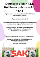 LAUANTAINA 12. ELOKUUTA 2023 KLO KLO 11.00 Duunarin piknik Hollihaan puistossa Tapahtumaan ovat tervetulleita kaikki SAK:laisen liittoperheen jäsenet! |